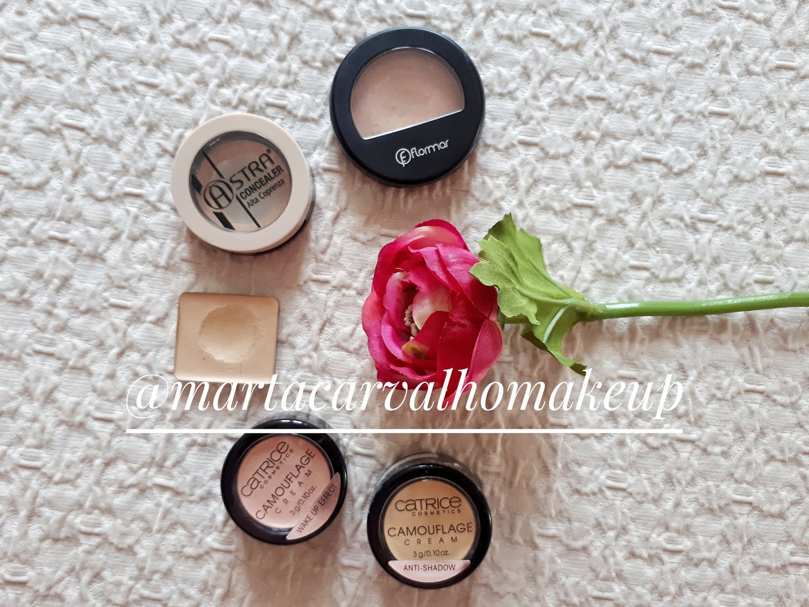 | Full Coverage Concealer Flormar 04, Astra Alta Coprenza Concealer 02, Inglot Camouflage Concealer 109, Catrice Camouflage cream Wake Up Effect e Anti-Shadow. |